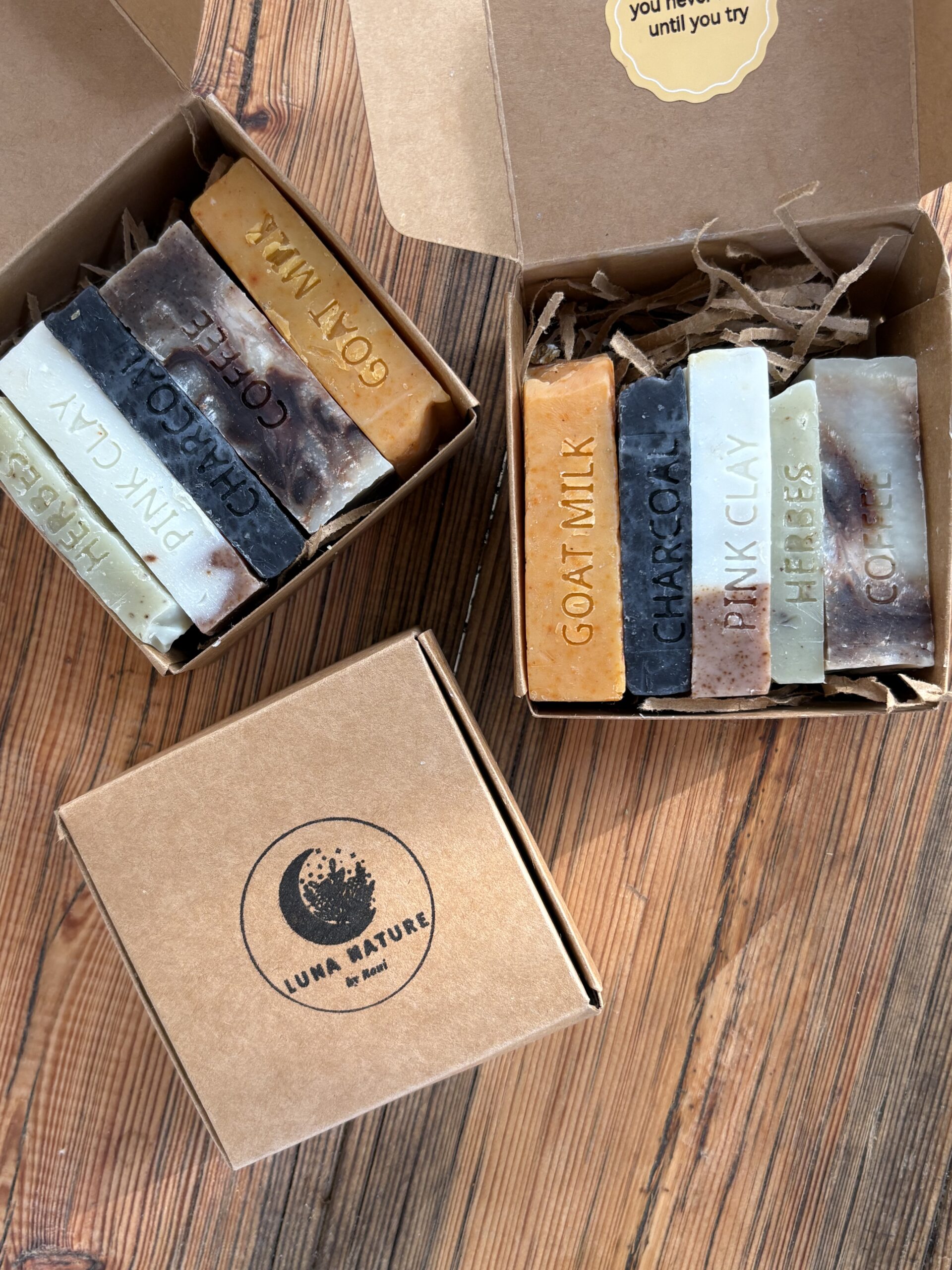 בואו להכיר את מגוון הסבונים של לונה! כל מארז מכיל מספר סבונים ממגוון סוגים משתנים בהתאם למלאי הקיים.