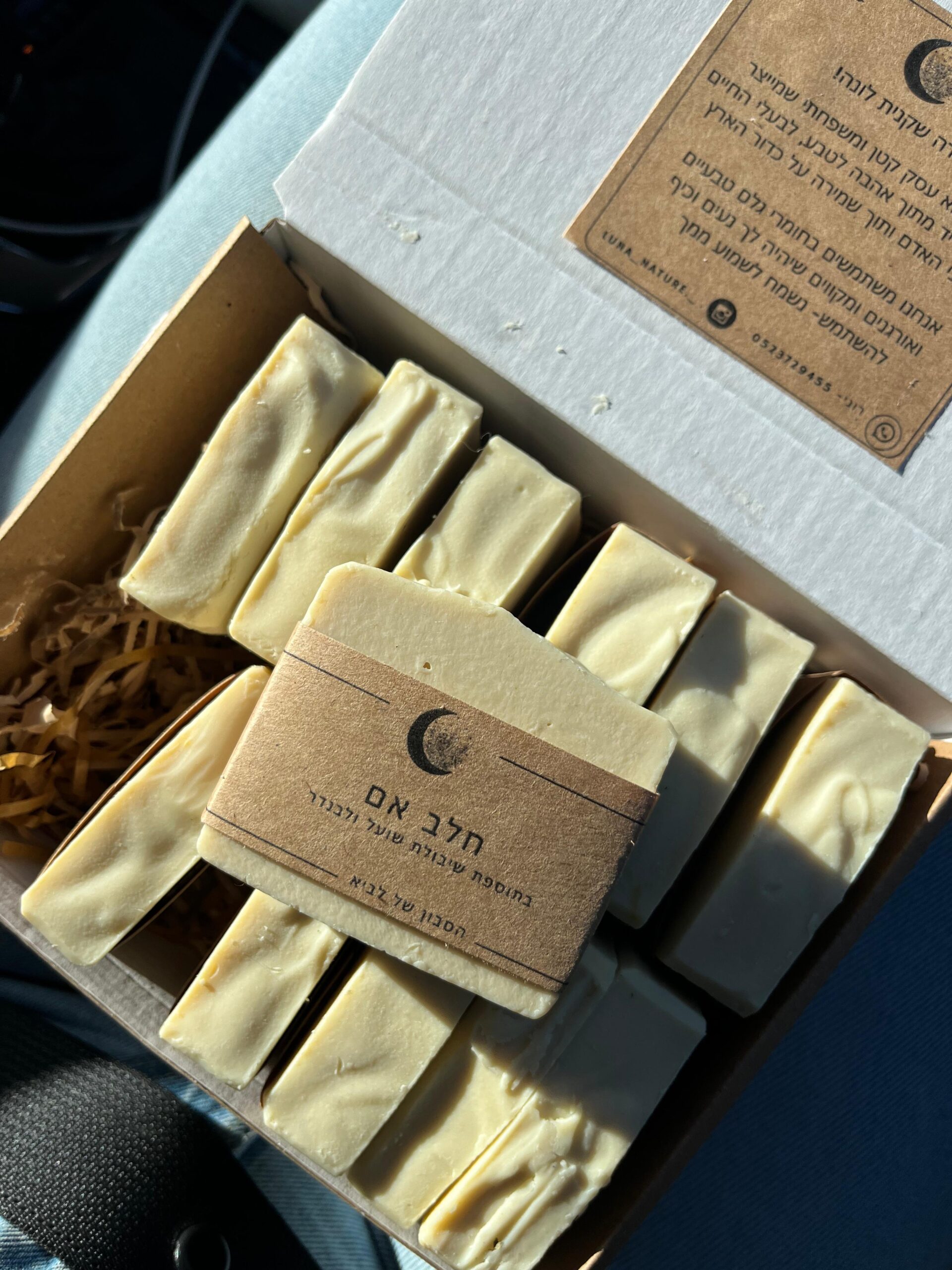 אני מקבלת ממך 150 מ"ל חלב אם ממנו אכין קילו-קילו וחצי סבון אישי אותו אחתוך ל10-12 חתיכות נוחות לשימוש.